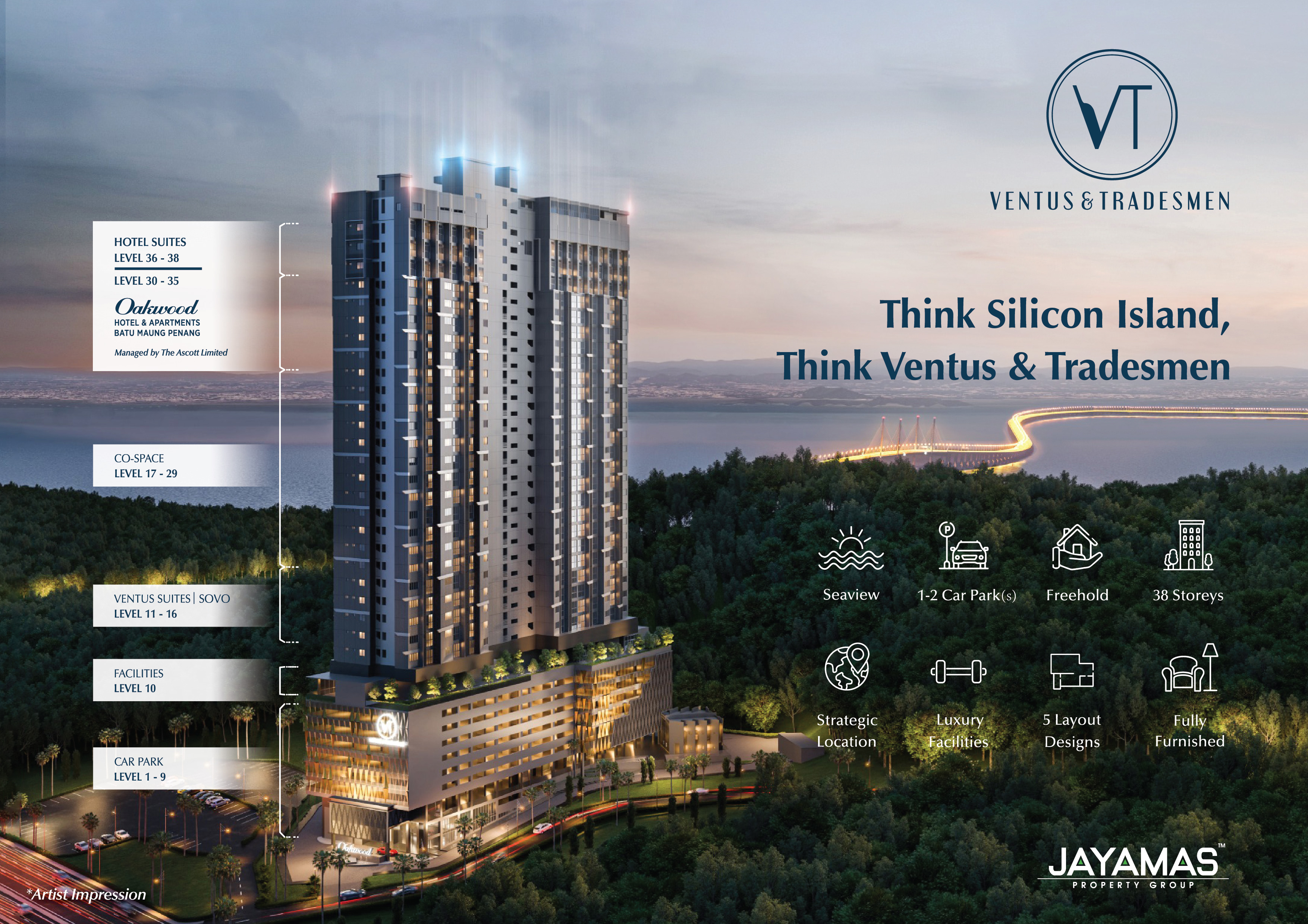 JAYAMAS PROPERTY GROUP has established itself as a trusted developer in Penang with a diverse portfolio spanning residential, commercial, and hospitality projects. Its hospitality ventures include Bagan Suites (Butterworth) and Marc Service Apartments (Bukit Mertajam), both recognized for their comfort, convenience, and premium service. The Group also launched Ventus & Tradesmen, a landmark mixed-use development designed for vibrant, contemporary urban living, serving as a gateway to Silicon Island.